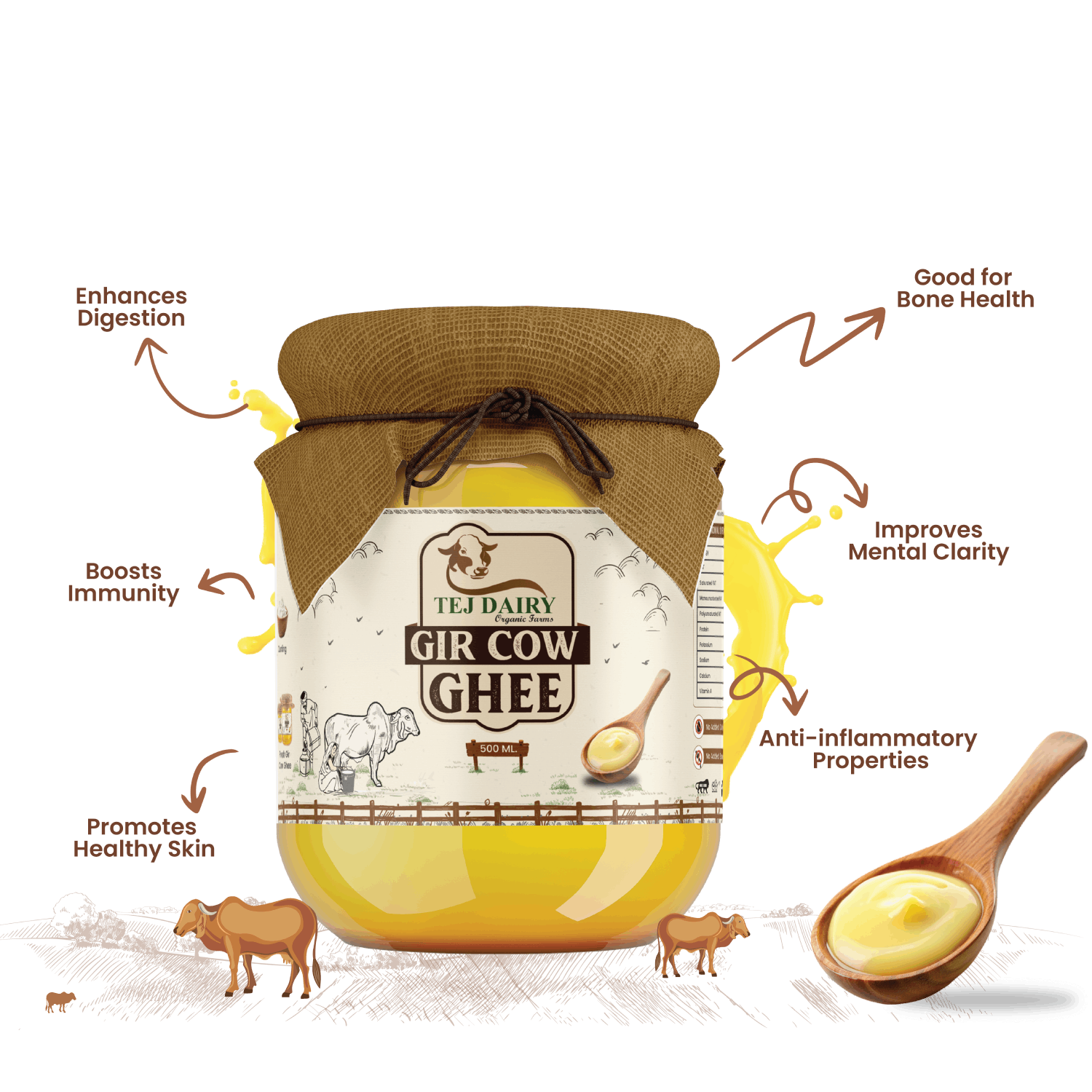 Gir Cow Cultured Ghee is made using fresh Gir cow milk. The milk is brought to a boil and naturally cooled down to room temperature and inoculated with a natural starter culture and left overnight to...